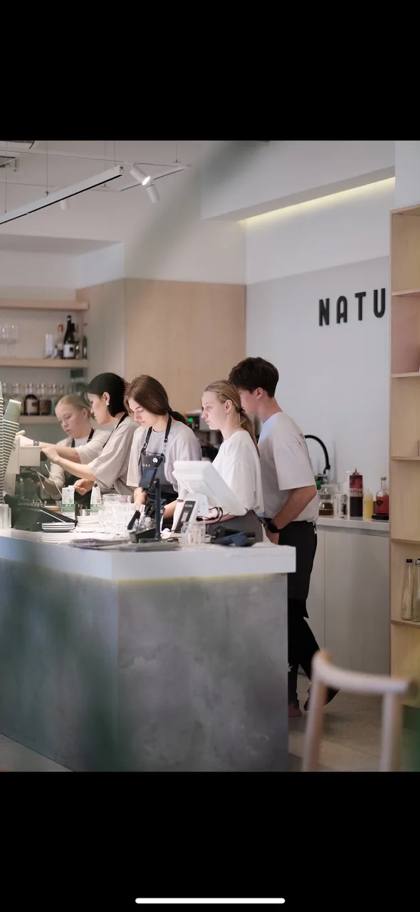 Natura — это не про «ещё одну кофейню». Это гибрид кофейни и бистро: specialty-кофе собственной обжарки, авторская кухня от шефа Chefs Team Russia, собственные десерты по уникальной рецептуре, работа весь день — от завтрака до ужина.