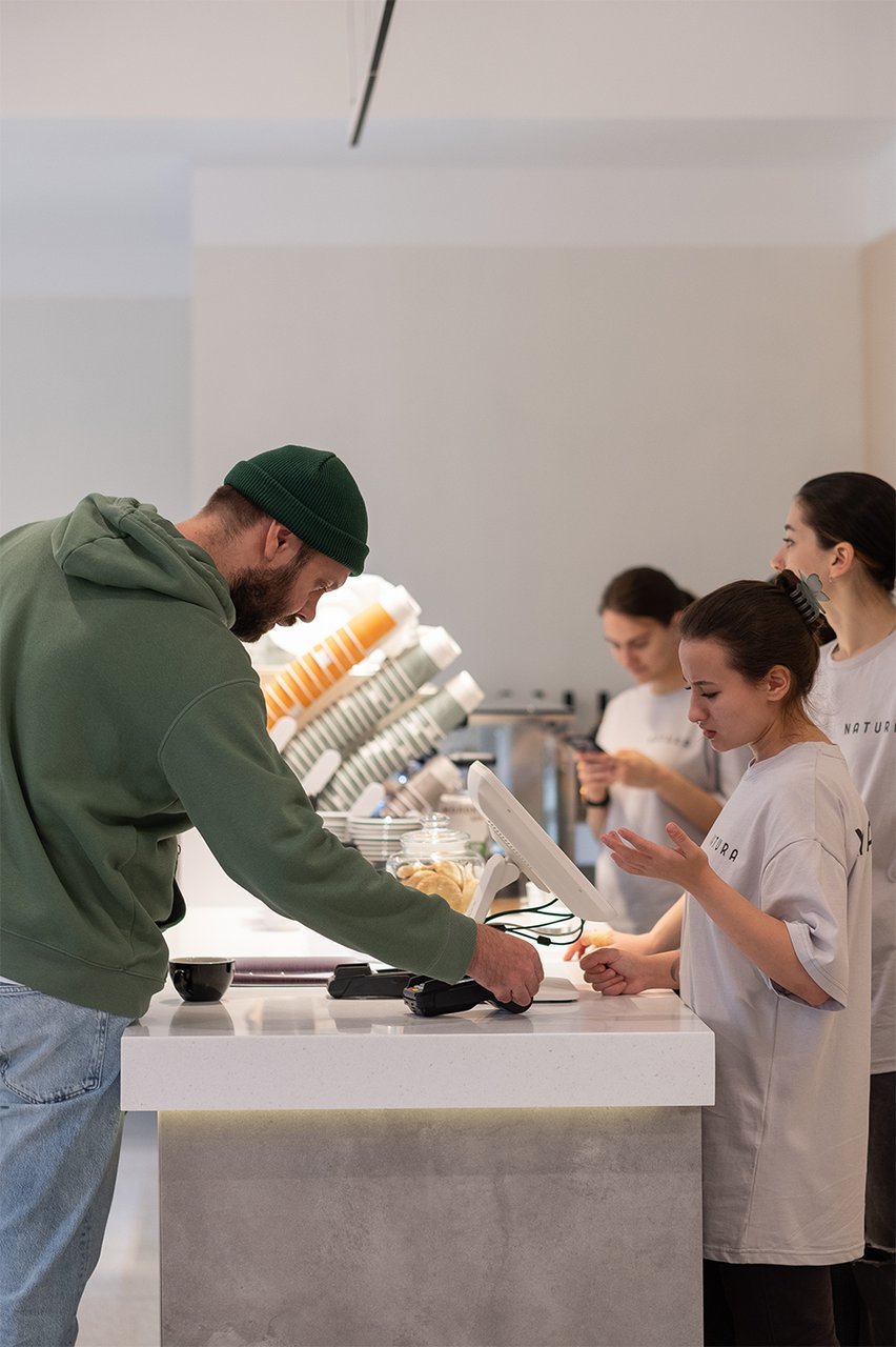Мы работаем с утра до вечера: завтраки, кофе-to-go, бизнес-ланчи, встречи, ужин. Это даёт стабильный поток гостей весь день и защищает от зависимости от одного пика (как у классических кофеен — утренний час пик). Выручка в 1,5–2 раза выше, чем у формата «только кофе».